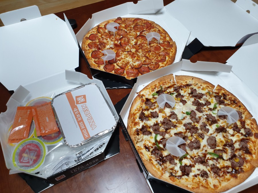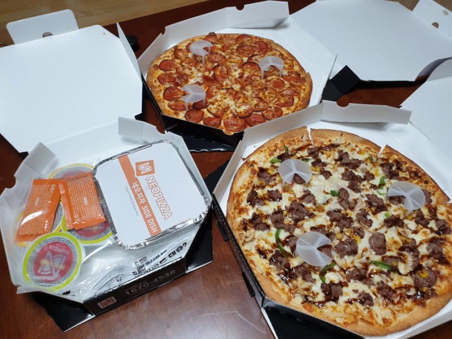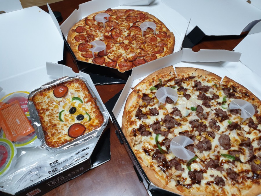 페퍼로니 피자와 불고기로 주문하였습니다