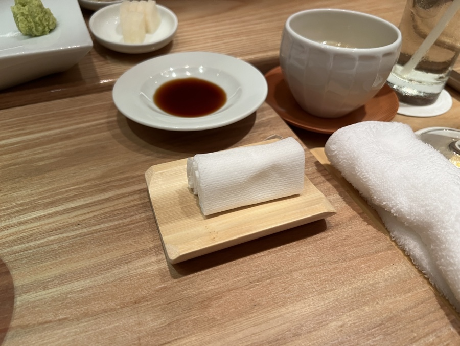 손으로 드실 분들을 위해 손가락 닦는 물티슈를 따로 준비해 주십니다