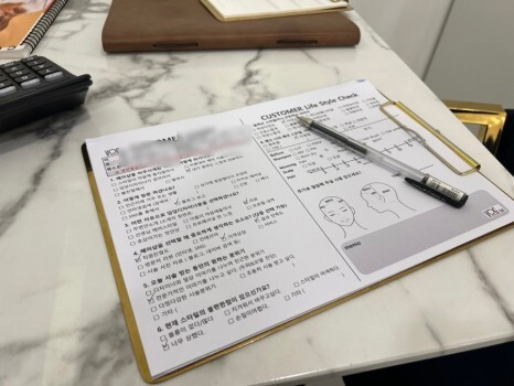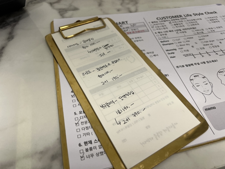 첫 방문이라 고객 카드를 작성하고 기다렸습니다