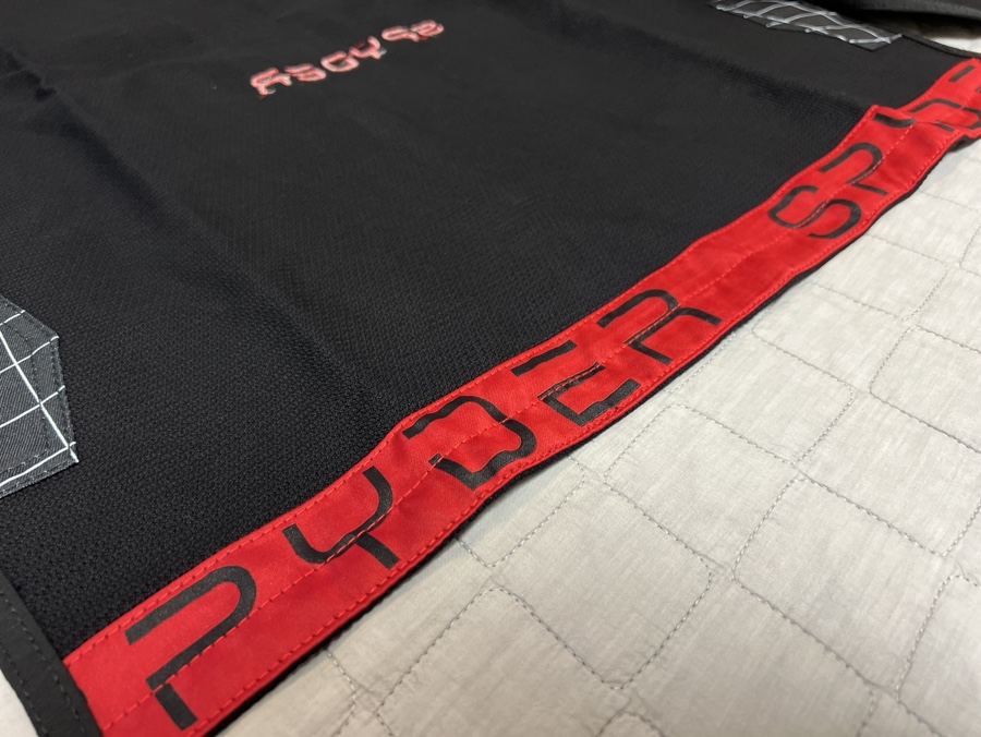 소매와 치마 아래는 스파이더 글씨가 있는 덧댐 처리가 되어있습니다