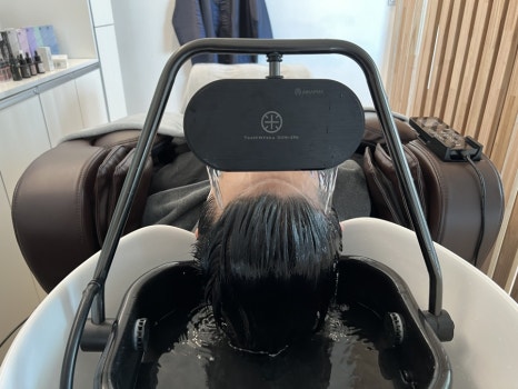 안마의자? 같은 곳에 누워서 안마도 받으면서 두피관리가 시작됩니다