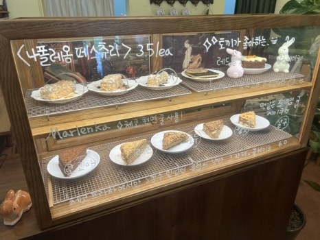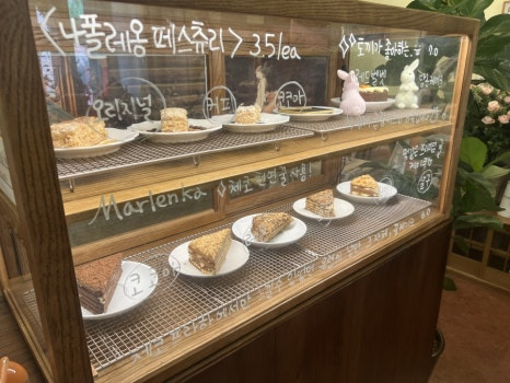 맛있어보이는 디저트들이 가득한 쇼케이스가 눈에 들어왔습니다