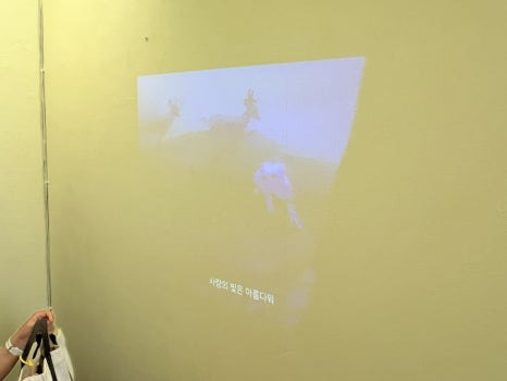 카페에서 눈에 들어온 건 벽면에 비친 디즈니 애니메이션이었습니다.