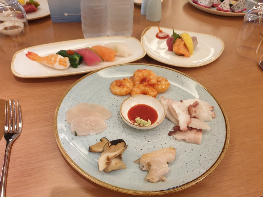 회, 해산물, 샐러드, 과일 등의 차가운 음식이