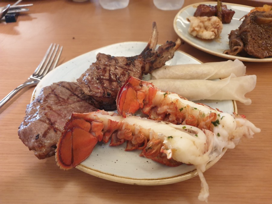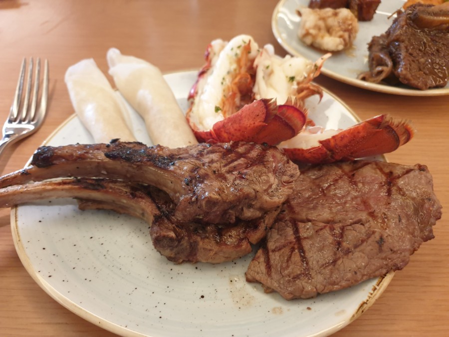 랍스터와 양 갈비, 스테이크,