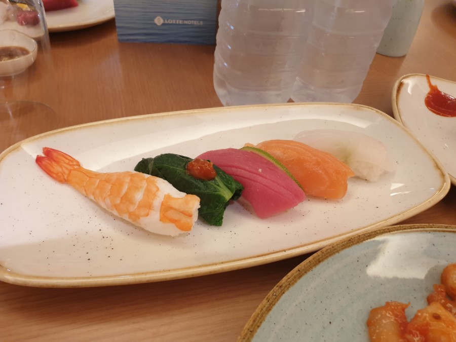 초밥을 직접 만들어 한 접시씩 세팅해 주십니다